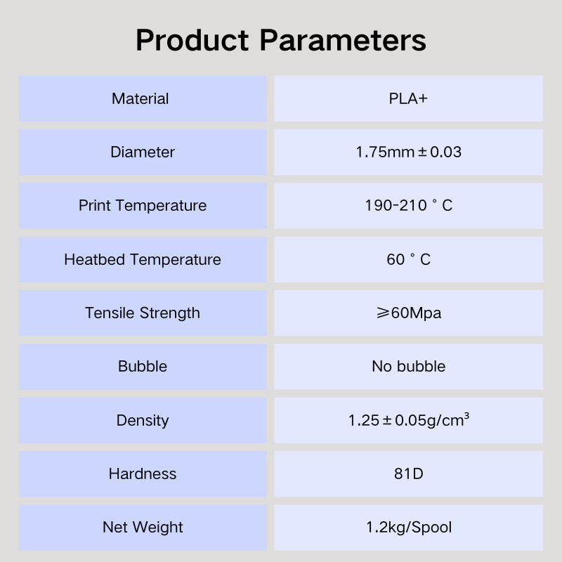 - The printing temperature is 190-210°C, heatbed temperature is 60C°